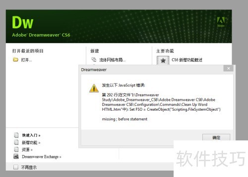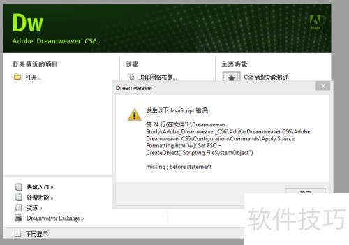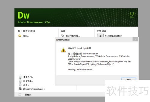 Dreamweaver启动报JavaScript错误?尝试重置首选项或修复安装文件即可解决。