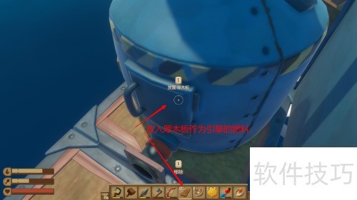 3、 将厚木板放入作引擎燃料