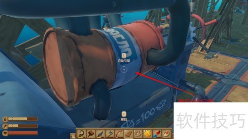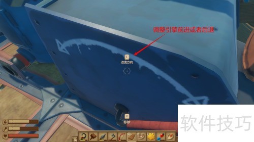 4、 转动引擎方向杆,控制木筏前行航向。