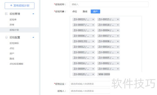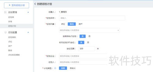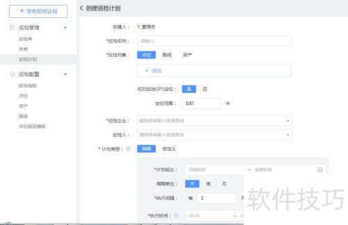 1、 进入系统后选择巡检管理中的发布巡检计划,跳转至创建页面。