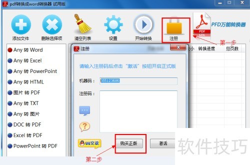 1、 请注意,下载的均为试用版本。如需继续使用,请点击注册,弹出激活窗口后输入注册码完成激活;若无注册码,请选择购买正版以获取完整功能。