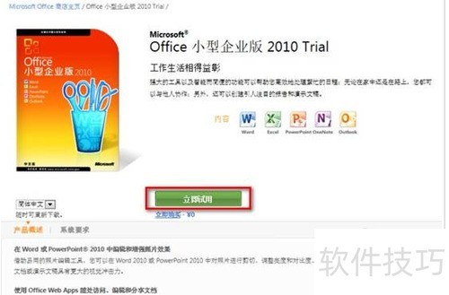 2、 访问试用页面:http://office.microsoft.com/zh-cn/try/?CTT=3,可任选三个版本之一,本文以企业版为例进行体验。