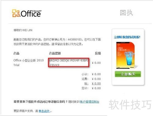 5、 注册新账户后,完成注册流程,微软会将产品密钥发送至注册邮箱。