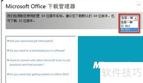 8、 双击运行后启动Microsoft Office下载管理器,自动识别系统位数并下载匹配的Office版本。