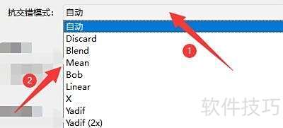 5、 在视频窗口中点击抗交错模式选项,从下拉菜单中选择所需类型,例如选择Mean模式。
