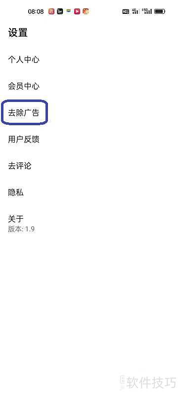 2、 进入设置页面后,选择去除广告选项。