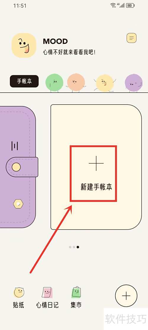 1、 打开MOOD手帐APP,进入首页后选择新建手帐本功能。