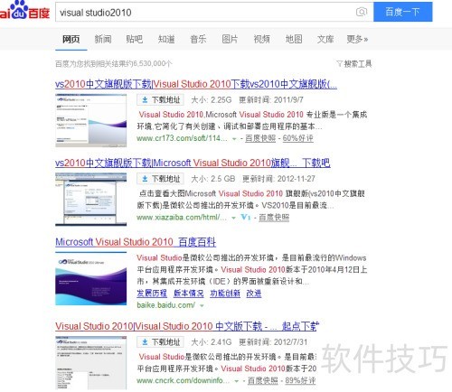 1、 在百度搜索栏输入visual studio2010进行查找。