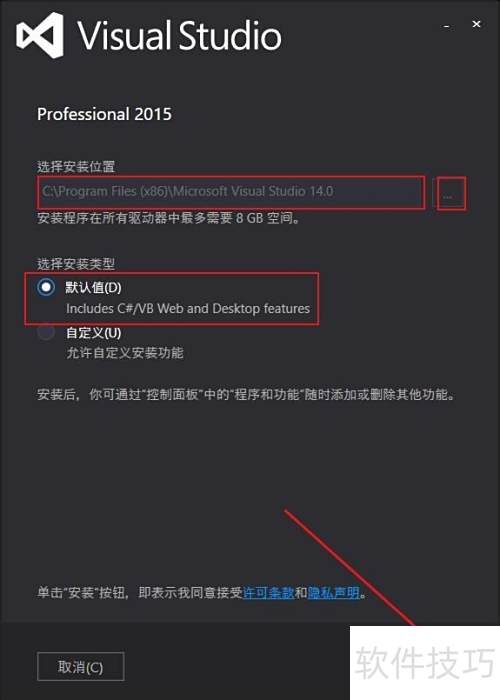 7、 选择默认安装类型,自行指定路径后点击安装即可。