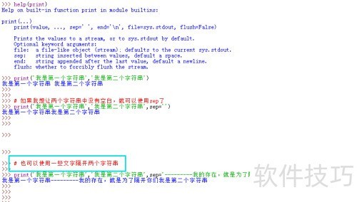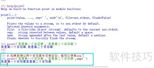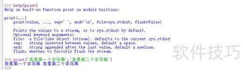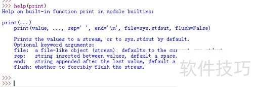 1、 print()函数用于在Shell窗口输出文本内容,若需了解其用法,可在IDLE中输入help(print)查看详细说明。