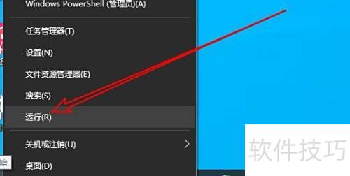 1、 在Windows 10系统中,右击屏幕左下角的开始图标,从菜单中选择运行选项即可。
