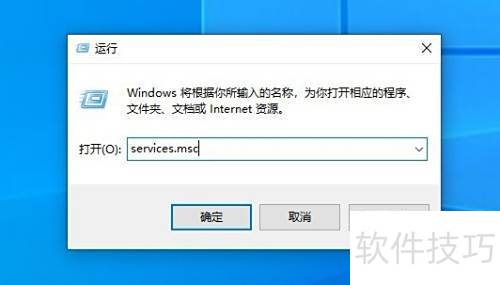 2、 在Windows 10的运行窗口中输入services.msc命令,然后点击确定即可打开服务管理界面。
