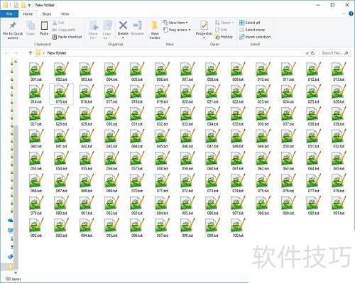 18、 创建一个包含100个文本文件的文件夹。
