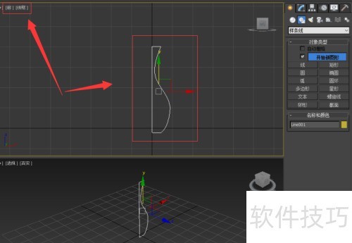 1、 启动Autodesk 3DS MAX,于界面右侧工具栏中选取样条线工具,点击鼠标左键即可使用。
