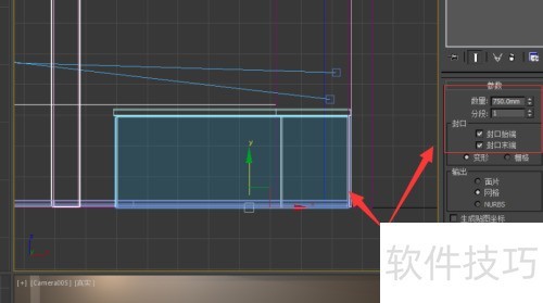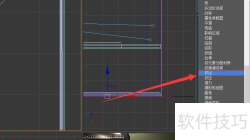 3、 选择线性模式,进入修改器菜单,添加挤出效果,调整橱柜高度及相关参数。