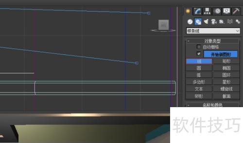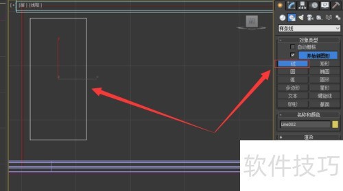 1、 启动Autodesk 3DS MAX,进入样条线面板,选用线条工具,根据橱柜台面尺寸绘制其外部轮廓。