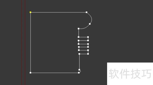 4、 在前视图中选取样条线类型,沿橱柜外侧绘制出门的轮廓形状。