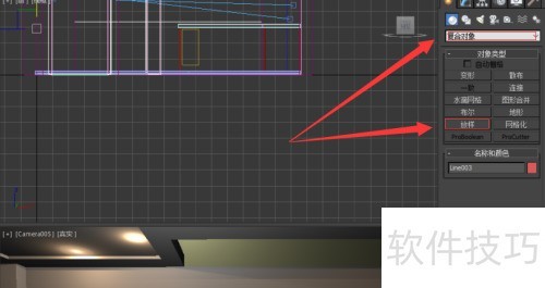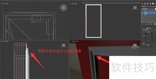 6、 选取橱柜门轮廓线,点击复合对象中的放样工具,拾取装饰截面图形,调整路径参数,生成外部修饰边,完成造型制作。