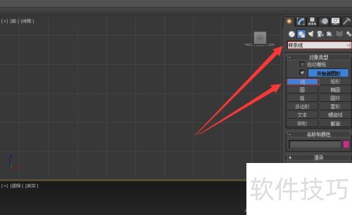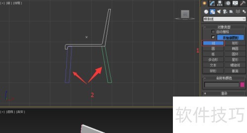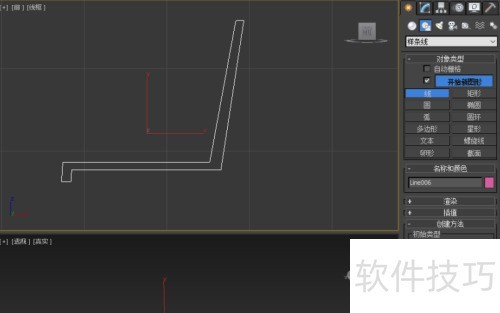 1、 启动Autodesk 3DS Max,进入右侧图形面板,选择样条线中的线工具,绘制木椅的截面轮廓。
