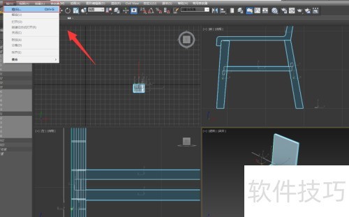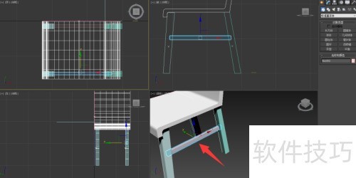 6、 依照步骤3放样创建靠背椅的前后腿,按住Shift键复制生成另外两条椅腿。