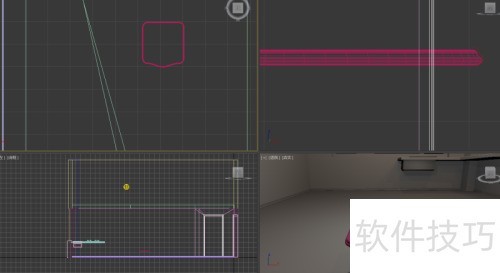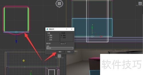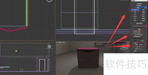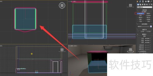 4、 选中修改后的矩形,于编辑修改器列表中添加倒角剖面修改器,并拾取已绘制的截面,完成床头柜顶盖的创建。