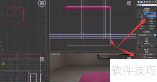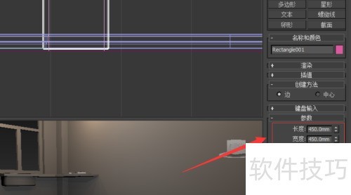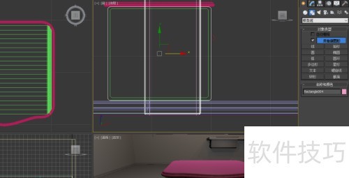 5、 在前视图用矩形工具绘制两个矩形,调整其参数与位置。