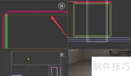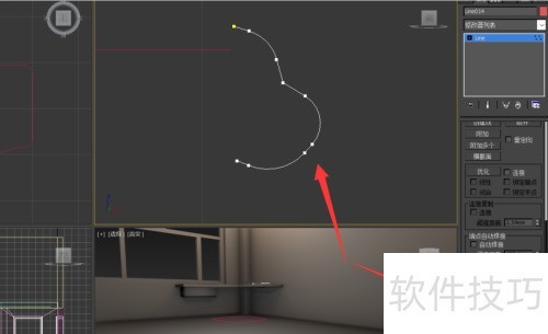 2、 选中刚画的矩形,进入修改编辑器的编辑样条线选项,对其进行优化调整。