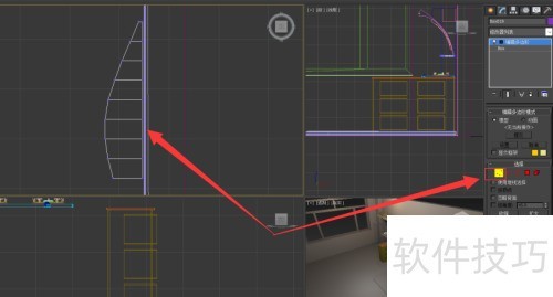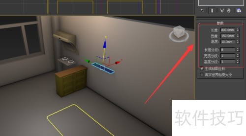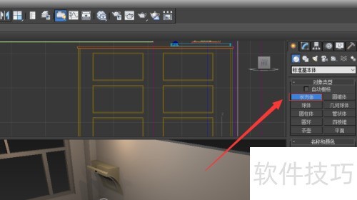 1、 启动软件,于标准基本体面板中选取长方体,在顶视图内创建并调节其尺寸与位置。