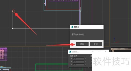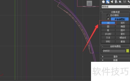 1、 启动软件,选用样条线中的线条工具,在顶视图绘制柜体轮廓。