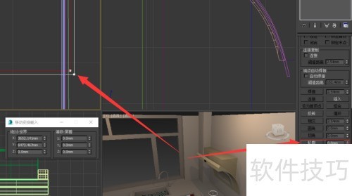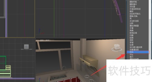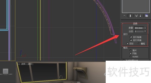 3、 选中线条后,在修改器中添加挤出,调整参数并移动至合适位置。