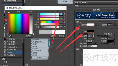 4、 将漫反射与反射参数均设为纯白,即三通道值均为255。