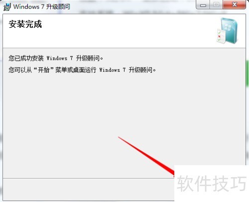 5、 安装完毕后,界面显示,点击关闭按钮,即可完成Windows 7升级顾问工具的安装。