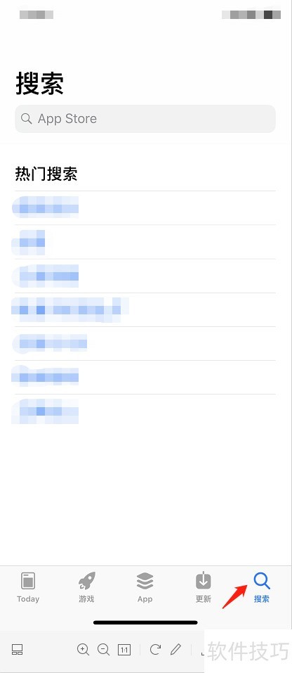 4、 打开App Store,点击右下角的搜索按钮进入搜索界面。