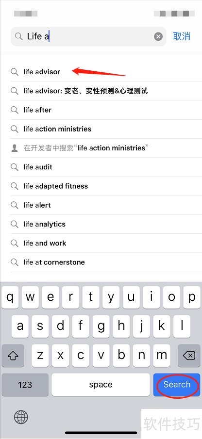 5、 进入搜索页面,在输入框中键入Life Advisor,随后点击搜索按钮即可。