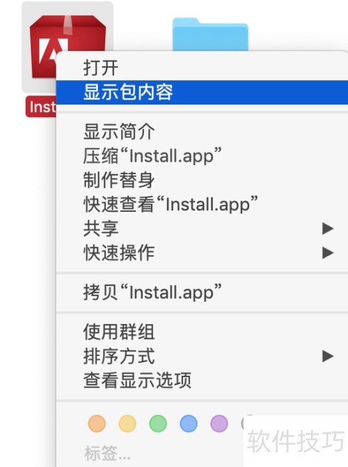 2、 双击打开窗口,选中install,右键点击并选择显示包内容。
