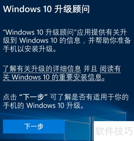 2、 打开升级助手,点击下一步,找到可用的Windows 10更新并勾选,确认升级选项,继续点击下一步完成操作。