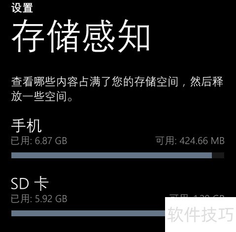 4、 手机存储不足时会提示清理空间,可进入设置中的储存感知,选择手机存储,通过转移文件或卸载应用来释放容量。