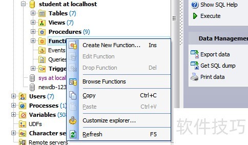 4、 在上右键,选择即可新建函数。