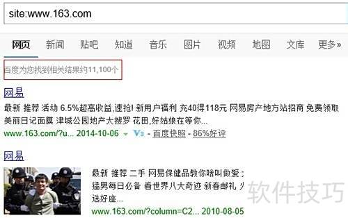6、 在SEO优化中,常用site命令查看网站收录状态,图中红框部分即显示了具体收录信息。