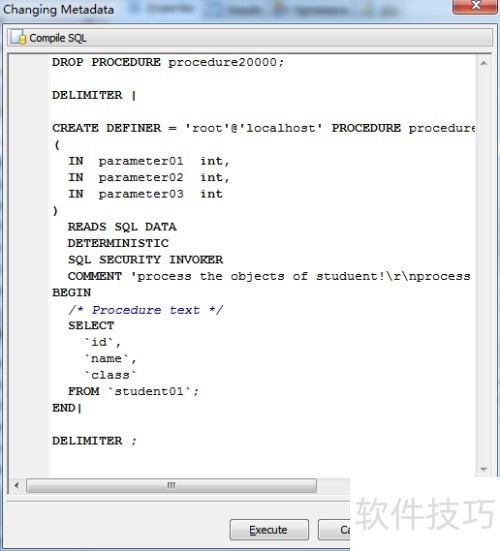 8、 点击执行按钮,存储过程的确定性即被更新。