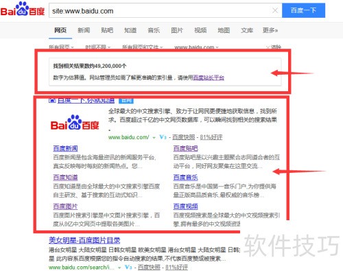 3、 第一个框会显示部分站长平台的数据,例如索引量等信息,但由于site的是百度网址,多数内容无法完整呈现。第二个框展示的是百度首页的搜索结果,若你的网站未排在首位,需警惕首页是否遭遇百度降权,这属于较为严重的问题,可能影响整体搜索表现,应尽快排查原因并采取优化措施。