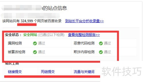 8、 此处更换网站展示该图片,可清晰查看网站收录数据、安全状态及各类站长工具入口,便于全面了解网站相关信息。