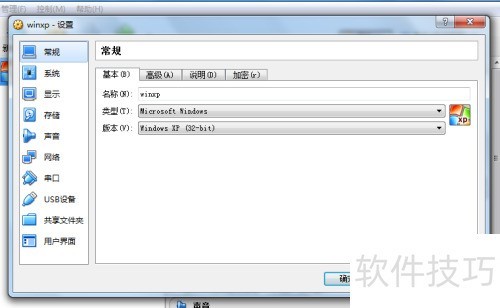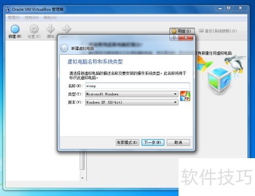 1、 打开VirtualBox软件,点击新建,在名称栏输入winxp,随后点击下一步按钮继续操作。