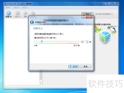 2、 建议设置内存为512M或以上,调整完毕后点击下一步继续。