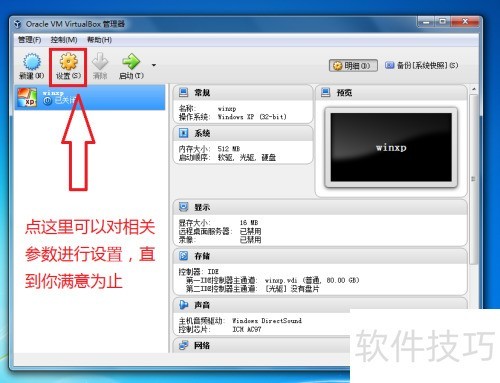 7、 此处可查看刚创建的XP虚拟机的详细信息(左图),若对配置参数不满意,可点击设置按钮进行整体调整(右图),直至符合个人需求为止。