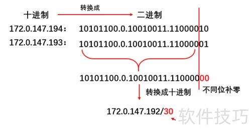 2、 因此,应填写172.0.147.192/30。同理,对应右侧两个子网的聚合,将IP地址172.0.147.197与172.0.147.198进行合并,可得出聚合后的网络地址为172.0.147.196/30,故应填写172.0.147.196/30。