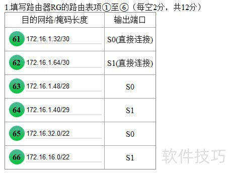 1、 最后一题常分三部分,首部分需填写路由器RG的六个路由表项。