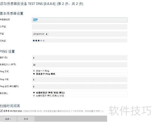 3、 进入设备编辑页面,输入名称及IP地址或域名,确认无误后点击继续。
