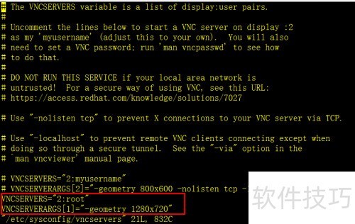2、 编辑配置文件:vi /etc/sysconfig/vncservers,修改相应设置以调整VNC服务参数。