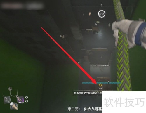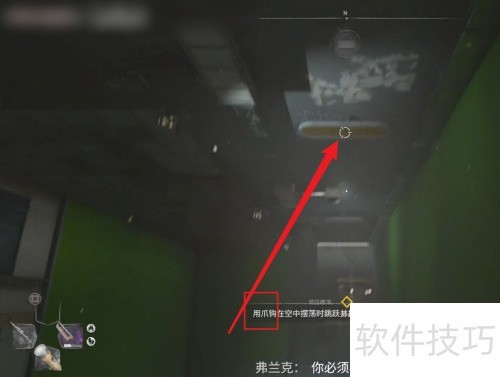 3、 抓住爪钩绳索,跃至任务标记的侧楼处。